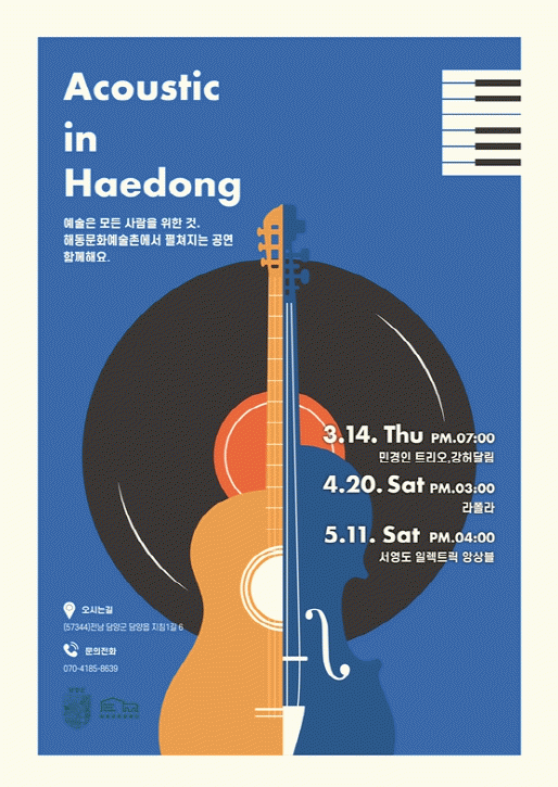 ù ¹øÂ° °ø¿¬Àº ´ëÁßÀ½¾Ç °ø¿¬À¸·Î 3¿ù 14ÀÏ ¸ñ¿äÀÏ ¿ÀÈÄ 7½Ã ÇØµ¿¹®È¿¹¼úÃÌ ¿À»öµ¿¿¡¼ ¿¸®¸ç ÇǾƴϽºÆ® ¹Î°æÀΰú °¡¼ö °Çã´Þ¸²ÀÌ ÇÔ²² ¹«´ë¸¦ ÁغñÇÑ´Ù.