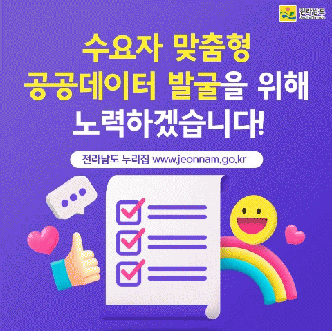 Àü³²µµ´Â À̹ø ¼³¹®Á¶»ç¸¦ ÅëÇØ ¾òÀº µ¥ÀÌÅ͸¦ ºÐ¼®, °ø°øµ¥ÀÌÅÍ °³¹æ Á¤Ã¥°ú ¼ºñ½º °³¼±¿¡ Àû±Ø ¹Ý¿µÇÒ °èȹÀÌ´Ù. µµ¹ÎÀÌ ÀÏ»ó»ýȰ¿¡¼ °ø°øµ¥ÀÌÅ͸¦ º¸´Ù ½±°í À¯¿ëÇÏ°Ô È°¿ëÇϴµ¥ ÁßÁ¡À» µÎ°í ÃßÁøÇÑ´Ù.