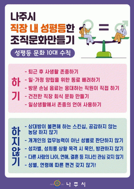 ÇÏÁö ¾Ê±â ¿ª½Ã ¡®»ó´ë¹æÀÌ ºÒÆíÇØÇÏ´Â ½ºÅ²½Ê, °ø°¨ÇÏÁö ¾Ê´Â ³ó´ãÇÏÁö ¾Ê±â¡¯, ¡®°³°³ÀÎÀÇ ¾÷¹«´É·ÂÀÌ ¾Æ´Ñ ¼ºº°·Î ÆÇ´ÜÇÏÁö ¾Ê±â¡¯, ¡®¼ºÂ÷º°¡¤¼ºÈñ·Õ »óȲ ¸ñ°Ý ½Ã ¹¬ÀÎ, ¹æ°üÇÏÁö ¾Ê±â¡¯, ¡®´Ù¸¥ »ç¶÷ÀÇ ³ªÀÌ¡¤¿¬¿¹¡¤°áÈ¥ µî Áö³ªÄ£ °ü½É °®Áö ¾Ê±â¡¯, ¡®¼ºº°¡¤¿¬·É¿¡ µû¸¥ Æí°ß °®Áö ¾Ê±â¡¯ µî Á÷¿øµéÀÌ Ã¼°¨ÇÒ ¼ö ÀÖ´Â Ç׸ñÀ¸·Î ±¸¼ºµÆ´Ù.