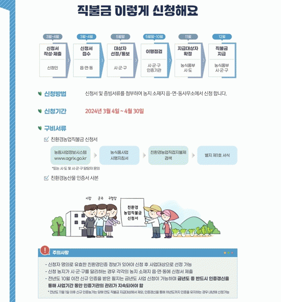 ģȯ°æ³ó¾÷Á÷ºÒ±ÝÀº ģȯ°æ³ó»ê¹°(À¯±â¡¤¹«³ó¾à) ÀÎÁõÀ» ¹Þ°í ³óÁö ¼ÒÀçÁö À¾¸éµ¿ Áֹμ¾ÅÍ¿¡¼ Á÷ºÒ±Ý ½Åû¼¿Í ģȯ°æ³ó»ê¹° ÀÎÁõ¼ »çº»À» ÷ºÎÇØ Á¦ÃâÇÏ¸é µÈ´Ù.