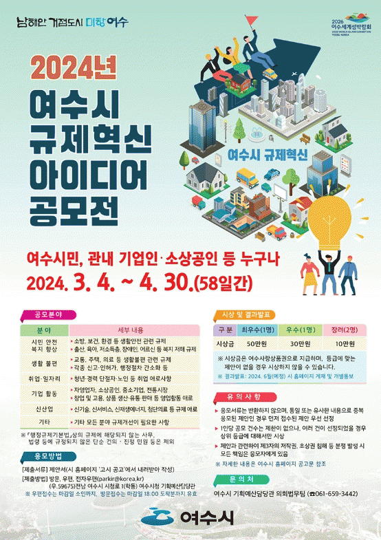 Á¢¼öµÈ ¾ÆÀ̵ð¾î´Â ½ÇÇà°¡´É¼º°ú âÀǼº, È¿À²¼º.È¿°ú¼º µî 1Â÷ ¼Ò°üºÎ¼ °ËÅä ÈÄ ¿©¼ö½Ã ±ÔÁ¦°³ÇõÀ§¿øÈ¸ ½ÉÀǸ¦ °ÅÃÄ 6¿ù Áß ÃÖÁ¾ ¼ö»óÀÚ°¡ ¹ßÇ¥µÉ ¿¹Á¤ÀÌ´Ù.
