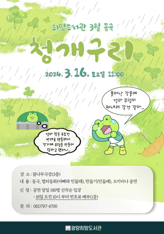 °ø¿¬ °ü¶÷°ú üÇèÀº ¹«·áÀ̸ç, Âü¿©¸¦ Èñ¸ÁÇÏ´Â ¾î¸°ÀÌ °¡Á·Àº °ø¿¬ ´çÀÏ ¿ÀÀü 10½Ã Èñ¸Áµµ¼°ü 1Ãþ¿¡¼ ¹øÈ£Ç¥¸¦ ¹èºÎ¹ÞÀ¸¸é µÈ´Ù.