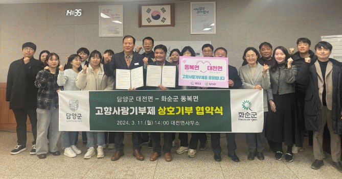 À̹ø Çù¾àÀ» ÅëÇØ °íÇâ»ç¶û±âºÎÁ¦ Ȱ¼ºÈ °ÇÀüÇÑ ±âºÎ¹®È È®»êÀ» À§ÇØ »óÈ£ Çù·ÂÇϱâ·Î ¶æÀ» ¸ð¾ÒÀ¸¸ç, ´ã¾ç±º ´ëÀü¸é Á÷¿ø°ú ȼø±º µ¿º¹¸é Á÷¿ø 15¸íÀÌ °¢ ÁöÀÚü¿¡ 10¸¸ ¿ø¾¿ ÃÑ 300¸¸ ¿øÀ» ±âºÎÇϸç Áö¿ª ¹ßÀüÀ» ÀÀ¿øÇß´Ù.