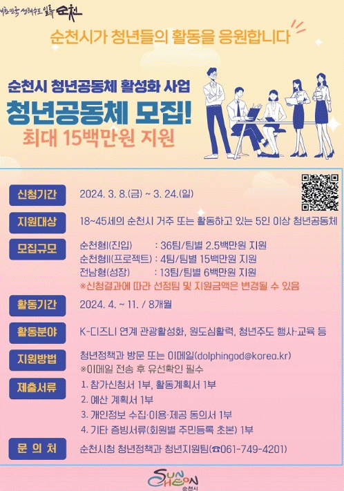 Áö¿ø ´ë»óÀº ¼øÃµ½Ã¿¡¼ °ÅÁÖ ¶Ç´Â Ȱµ¿Çϰí ÀÖ´Â 18¼¼ ºÎÅÍ 45¼¼·Î ±¸¼ºµÈ 5ÀÎ ÀÌ»ó û³â °øµ¿Ã¼À̸ç, ¼øÃµ½Ã¿¡ Áֹεî·Ï ÁÖ¼Ò¸¦ µÐ û³â ºñÀ²ÀÌ 60% ÀÌ»óÀ̾î¾ß ÇÑ´Ù.