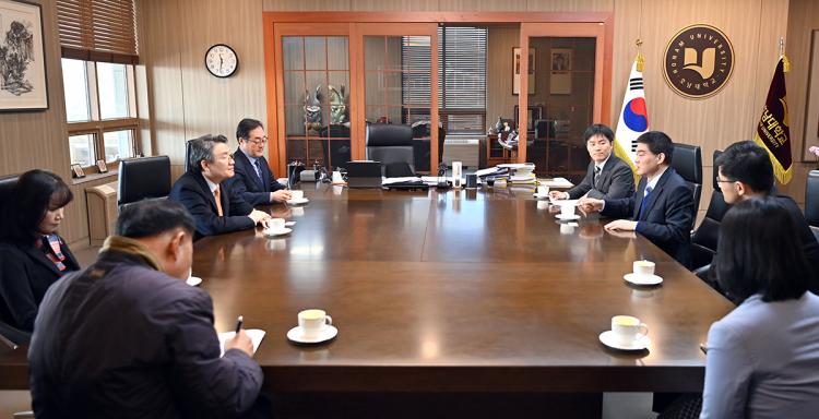 [ÅåÅå´º½º]¹Ú»óö È£³²´ëÇб³ ÃÑÀåÀº 3¿ù 13ÀÏ ±¸Â¡Ä¡(ÍÓÌØÐô) ½ÅÀÓ ÁßÈÀιΰøÈ±¹ ÁÖ±¤ÁÖÃÑ¿µ»çÀÇ ¿¹¹æÀ» ¹Þ°í ȯ´ãÀ» ³ª´³´Ù.