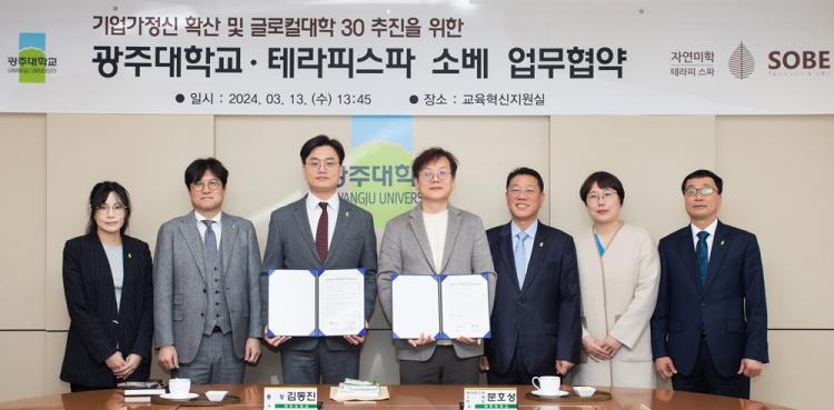 [ÅåÅå´º½º]±¤ÁÖ´ëÇб³(ÃÑÀå ±èµ¿Áø)´Â 13ÀÏ ¿ÀÈÄ ±³³» ÇàÁ¤°ü 6Ãþ ±³À°Çõ½ÅÁö¿ø½Ç¿¡¼ ·°¼Å¸® Èú¸µ ½ºÆÄ ¾÷üÀÎ Å×¶óÇÇ ½ºÆÄ ¼Òº£(´ëÇ¥ ¹®È£¼º)¿Í ±â¾÷°¡Á¤½Å È®»ê ¹× ±Û·ÎÄôëÇÐ 30 °øµ¿ ÃßÁøÀ» À§ÇÑ ¾÷¹«Çù¾àÀ» ¸Î¾ú´Ù.