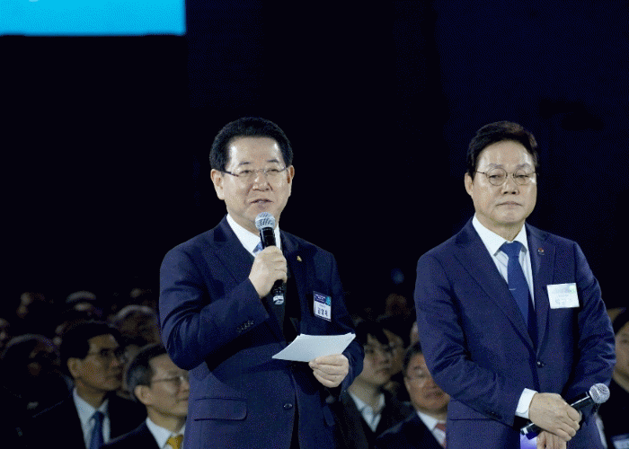 ¡®´º½ºÆäÀ̽º¡¤¿ìÁÖ°æÁ¦ÀÇ »ï°¢Ã¼Á¦-Àü³²¡¤°æ³²¡¤´ëÀü¡¯À» ½½·Î°ÇÀ¸·Î ¿¸° Ãâ¹ü½Ä¿¡´Â À±¼®¿ ´ëÅë·É, ÀÌÁ¾È£ °ú±âºÎ Àå°ü, ±è¿µ·Ï Àü³²µµÁö»ç, ¹Ú¿Ï¼ö °æ³²µµÁö»ç, ÀÌÀå¿ì ´ëÀü½ÃÀå µî ÁöÀÚü, ±â¾÷, Çаè Àü¹®°¡ µî 450¿© ¸íÀÌ ÇÔ²²Çß´Ù.