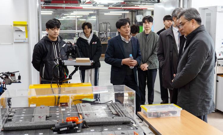 ¾ö¼ºº¹ ¿øÀåÀº À̹ø ¹æ¹®¿¡¼ ¹Ì·¡ÀÚµ¿Â÷°øÇкΠ»ó»ó°øÀÛ¼ÒÀÇ Àü±âÀÚµ¿Â÷ ¹× ÀÚÀ²ÁÖÇàÀÚµ¿Â÷ ±³À°ÇöÀåÀ» »ìÆìº»µ¥ À̾î ģȯ°æ ¹Ì·¡ÀÚµ¿Â÷ ºÐ¾ß¸¦ À̲ø¾î³ª°¥ ÇлýµéÀ» °Ý·ÁÇß´Ù.