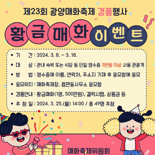 ¡®È²±Ý¸ÅÈ GET¡¯ À̺¥Æ®´Â ÃàÁ¦¸¦ ãÀº ½Ã¹Î°ú °ü±¤°´À» ´ë»óÀ¸·Î ÆîÄ¡´Â ºòÀ̺¥Æ®·Î Ãß÷À» ÅëÇØ ÃÑ 49¸í¿¡°Ô 500¸¸¿ø »ó´ç Ȳ±Ý¸ÅÈ µîÀÇ Çà¿îÀ» ¼±»çÇÑ´Ù.