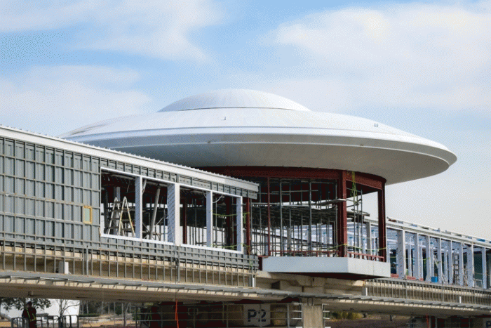 ¼øÃµ½Ã°¡ ¡®½ºÆäÀ̽º ºê¸´Áö¡¯¿¡ Áö¸§ 20mÀÇ ¿ìÁÖ¼± ¸ð¾çÀÇ Á¶Çü¹° ¼³Ä¡¸¦ ÁøÇàÇß´Ù. ¡®½ºÆäÀ̽º ºê¸´Áö¡¯´Â ³ëÈÄÈµÈ ¡®²ÞÀÇ´Ù¸®¡¯¸¦ ¾÷±×·¹À̵åÇÑ Àå¼Ò·Î, ¾î¸°À̵éÀÇ ²ÞÀ» ¿ìÁÖ±îÁö ¿¬°áÇÑ´Ù´Â Àǹ̸¦ ´ã¾Ò´Ù.
