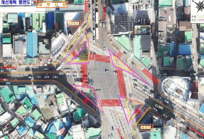 ƯÈ÷, µ¿ºÎ½ÃÀå ÀαÙÀÇ ´ÙÀÌ¼Ò¿Í Àϼº´ç ¾Õ ¿ìȸÀü Àü¿ëÂ÷·Î´Â Á÷¼±Çü¿¡¼ °î¼±ÇüÀ¸·Î °³¼±ÇÏ°í °ú¼Ó¹æÁöÅΰú °í¿ø½ÄȾ´Üº¸µµ µîÀ» ¼³Ä¡ÇØ ¿îÀüÀÚÀÇ ÁÖÇ༺°ú ½Ã¾ß¸¦ È®º¸ÇÔ°ú µ¿½Ã¿¡ º¸ÇàÀÚÀÇ ¾ÈÀüÀ» Çâ»óÇÑ´Ù´Â °èȹÀÌ´Ù.