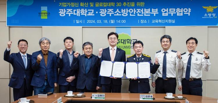 [ÅåÅå´º½º]±¤ÁÖ´ëÇб³(ÃÑÀå ±èµ¿Áø)´Â 18ÀÏ ¿ÀÈÄ ±³³» ÇàÁ¤°ü 6Ãþ ±³À°Çõ½ÅÁö¿ø½Ç¿¡¼ ±¤ÁÖ±¤¿ª½Ã¼Ò¹æ¾ÈÀüº»ºÎ(º»ºÎÀå ±è¹®¿ë)¿Í ±Û·ÎÄôëÇÐ 30 °øµ¿ÃßÁøÀ» À§ÇÑ ¾÷¹«Çù¾àÀ» ¸Î¾ú´Ù.