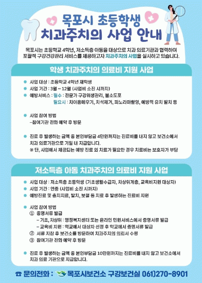 ¾Õ¼ ½Ã´Â ¸ñÆ÷³» Ä¡°ú ÀÇ·á±â°ü 33°³¼Ò¿¡ »ç¾÷ Âü¿© ½ÅûÀ» ¹Þ°í ÃʵîÇб³ 33°³¼Ò, Áö¿ª¾Æµ¿¼¾ÅÍ 41°³¼Ò µî¿¡ ¾È³»¹®À» ¹èºÎÇß´Ù.