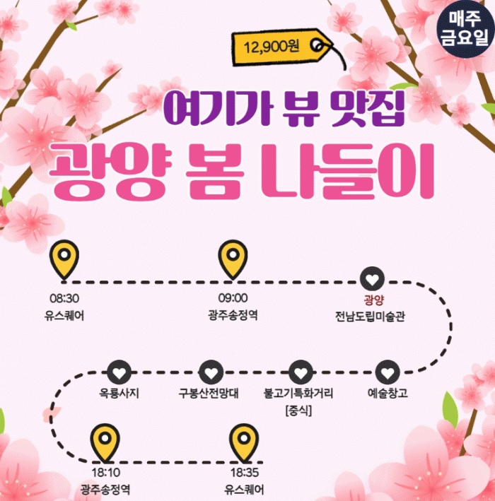 ¡®±¤¾ç º½³ªµéÀÌ¡¯´Â ¿Á·æ»çµ¿¹é³ª¹«½£, ±¸ºÀ»êÀü¸Á´ë µî¿¡¼ ¿¬µÔºû º½ dz°æ°ú µû½ºÇÑ º½ºµÀ» ÃæÀüÇÏ´Â °¨¼º¿©ÇàÀ¸·Î 5¿ù 31ÀϱîÁö ¸ÅÁÖ ±Ý¿äÀÏ ¿î¿µµÈ´Ù.