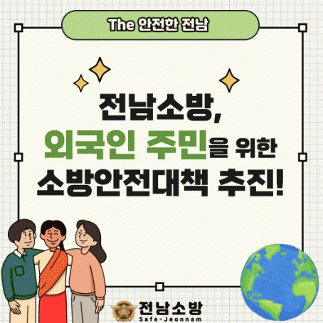 ÀÌ¿¡ Àü³²¼Ò¹æÀº ¿Ü±¹ÀÎ ¾ÈÀü»ç°í¸¦ ¿¹¹æÇÏ°í ¼Ò¹æ Á¦¹Ý»çÇ×À» ¸¶·ÃÇÏ´Â µî ¿Ü±¹ÀÎ ¾ÈÀüÇÑ È¯°æÀ» Á¶¼ºÀ» À§ÇØ ¡°¿Ü±¹ÀÎÁֹΠ¼Ò¹æ¾ÈÀü´ëÃ¥¡±À» ÃßÁøÇÑ´Ù.