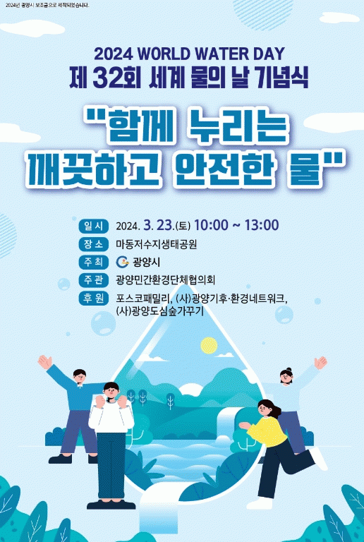 À̳¯ Çà»ç´Â ½Ã¹Î, ȯ°æ´Üü, 1»ç1ÇÏõ¿îµ¿ÃßÁøÇùÀÇȸ µî 300¿© ¸íÀÌ Âü¼®ÇÑ °¡¿îµ¥ ¼öÁú°³¼± À¯°øÀÚ(3¸í) ǥâ, ¹° ȯ°æ ÄûÁî´ëȸ, ¸¶µ¿Àú¼öÁö»ýŰø¿ø ÁÖº¯ ȯ°æÁ¤ÈȰµ¿, ¹° ȯ°æ °ü·Ã ±×¸² Àü½Ã µîÀÇ Çà»ç°¡ ÁøÇàµÉ ¿¹Á¤ÀÌ´Ù.