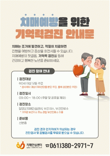 ÃÖ±Ù ±â¾ï·ÂÀÌ ÀúÇϵǴ µî Ä¡¸Å°¡ °ÆÁ¤µÇ´Â ÁÖ¹ÎÀº ´©±¸³ª ½ÅºÐÁõ ÁöÂü ÈÄ Ä¡¸Å¾È½É¼¾Åͳª º¸°ÇÁö¼Ò(Áø·á¼Ò)¿¡ ¹æ¹®ÇÏ¸é ¹«·á·Î Ä¡¸Å Á¶±â °ËÁøÀ» ¹ÞÀ» ¼ö ÀÖ´Ù.
