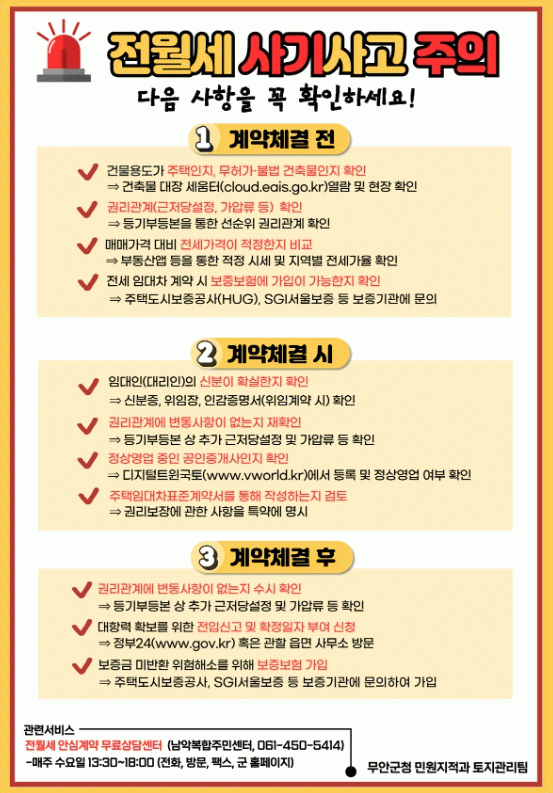 ±è¼ö¿µ ¹Î¿øÁöÀû°úÀåÀº ¡°Àü¿ù¼¼ »ç±â ÇÇÇØ ¿¹¹æÀ» À§Çؼ´Â °è¾àÇÒ ¶§ ÁÖÀÇ»çÇ׿¡ °üÇÏ¿© Á¤È®ÇÏ°Ô ¾Ë°í ´ëÀÀÇÏ´Â °ÍÀÌ Áß¿äÇÏ´Ù¡±¸ç, ¡°¹èÆ÷ÇÑ Àü´ÜÁö¸¦ ²À È®ÀÎÇÏ°í ±Ã±ÝÇÑ »çÇ×Àº ²À Àü¿ù¼¼ ¾È½É°è¾à ¹«·á»ó´ã¼¾ÅÍ¿¡ È®ÀÎ ÈÄ °è¾àÀ» ÁøÇàÇØ Áֱ⸦ ´çºÎµå¸°´Ù¡±°í ¸»Çß´Ù.