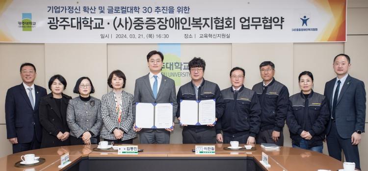 [ÅåÅå´º½º]±¤ÁÖ´ëÇб³(ÃÑÀå ±èµ¿Áø)´Â 21ÀÏ ¿ÀÈÄ ±³³» ÇàÁ¤°ü 6Ãþ ±³À°Çõ½ÅÁö¿ø½Ç¿¡¼ (»ç)ÁßÁõÀå¾ÖÀκ¹ÁöÇùȸ(ÀÌ»çÀå ÀÌÇÑö)¿Í ±Û·ÎÄôëÇÐ 30 °øµ¿ÃßÁø ¾÷¹«Çù¾àÀ» ¸Î¾ú´Ù.