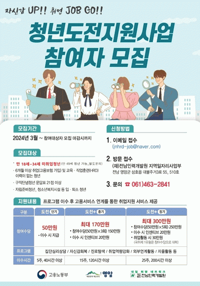 À̸ÞÀÏÀ̳ª »ïÈ£À¾ (Àç)Àü³²Àη°³¹ß¿ø Áö¿ªÀÏÀÚ¸®»ç¾÷ºÎ¿¡ ¹æ¹®ÇØ »ç¾÷ Âü¿© ½ÅûÀ» ÇÒ ¼ö ÀÖ°í, ÀÚ¼¼ÇÑ ¾È³»´Â ÀüÈ¿¡¼ ÇÑ´Ù.