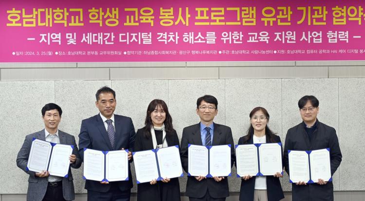 È£³²´ë »ç¶û³ª´®¼¾ÅÍ(¼¾ÅÍÀå À̹«Çü) ÁÖ°üÀ¸·Î ÀÌ·ïÁø À̹ø µðÁöÅÐ ±³À° Áö¿ø Çù¾à½Ä¿¡´Â È£³²´ëÇб³¿¡¼ ÄÄÇ»ÅÍ °øÇаú ¿À¸íÈÆ ÇаúÀå°ú HAI ÄÉ¾î µðÁöÅÐ ºÀ»ç´Ü ÀÌ»óÇö Áöµµ±³¼ö, °ü³» À¯°ü±â°ü¿¡´Â Çϳ²Á¾ÇÕ»çȸº¹Áö°ü À¯°æ¼÷ °üÀå°ú ±¤»ê±¸ Çູ³ª·ç³ëÀκ¹Áö°ü ±è°æ¿Á °üÀå ¹× Á÷¿øµéÀÌ Âü¼®Çß´Ù.