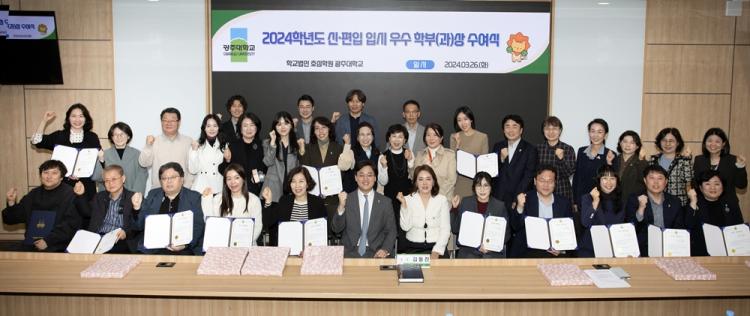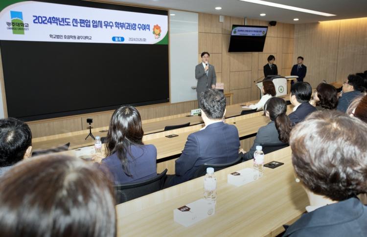 [ÅåÅå´º½º]±¤ÁÖ´ëÇб³(ÃÑÀå ±èµ¿Áø)´Â 26ÀÏ ¿ÀÀü ±³³» ÇàÁ¤°ü 3Ãþ ½º¸¶Æ®°Àǽǿ¡¼ 2024Çг⵵ ½Å¡¤ÆíÀÔ»ý ¸ðÁý¿¡¼ ¿ì¼öÇÑ ¼º°ú¸¦ ´Þ¼ºÇÑ ÃÑ 13°³ ÇкÎ(°ú) 73¸íÀÇ ±³¿ø¿¡ ´ëÇÑ ½Ã»ó½ÄÀ» °³ÃÖÇß´Ù.