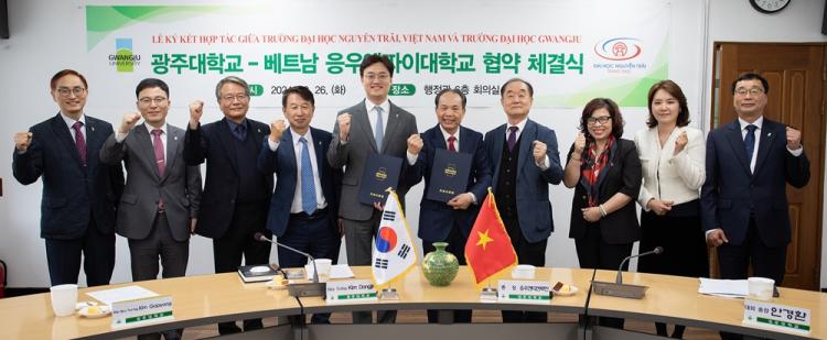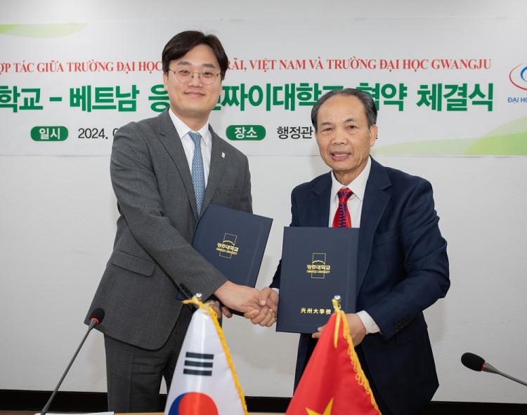 [ÅåÅå´º½º]±¤ÁÖ´ëÇб³(ÃÑÀå ±èµ¿Áø)´Â 26ÀÏ ±³³» ÇàÁ¤°ü 6Ãþ ȸÀǽǿ¡¼ º£Æ®³² ÀÀ¿ì¿ºÂ¥ÀÌ´ëÇб³(ÃÑÀå ÀÀÀ¢µð¿£·ç¾È)¿Í º£-ÇÑ ±¹Á¦´ëÇб³ ¼³¸³, º¹¼öÇÐÀ§ ÇÁ·Î±×·¥À» ºñ·ÔÇØ ±³È¯Çлý, ¾îÇп¬¼ö °úÁ¤, ±³Á÷¿ø ±³·ù Çù·ÂÀ» ¾à¼ÓÇÏ´Â Æ÷°ý ¾÷¹«Çù¾àÀ» ü°áÇß´Ù.