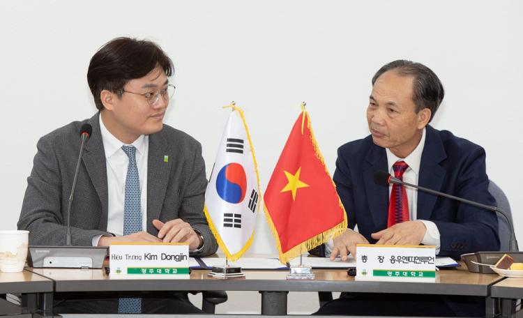 ±èµ¿Áø ±¤ÁÖ´ë ÃÑÀåÀº ¡°º£Æ®³²Àº ¿ì¸® ´ëÇаú °¡Àå ±ä¹ÐÇÏ°í ¿ìÈ£ÀûÀÎ °ü°è¸¦ À¯ÁöÇØ ¿Â ÃÖ°íÀÇ ±³À° ÆÄÆ®³Ê ±¹°¡´Ù¡±¸é¼ ¡°±¤ÁÖ´ëÇб³ÀÇ ±³À°±¹Á¦È ¿ª·®°ú ÀÀ¿ì¿ºÂ¥ÀÌ´ëÇб³ÀÇ ½ºÅ¸Æ®¾÷°ú °úÇбâ¼ú ¿¬±¸°³¹ß ¿ª·®À» ¿¬°èÇØ ¾ç±³°¡ ¼·Î À©À©ÇÏ´Â ¼º°øÀû Çù·Â¸ðµ¨À» ¸¸µé¾î °¡ÀÚ¡±°í ¸»Çß´Ù.