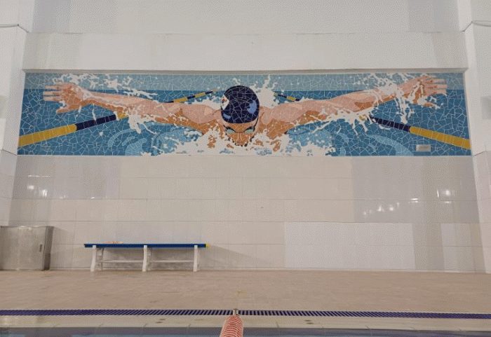Áøµµ±¹¹ÎüÀ°¼¾Å͸¦ ÀÌ¿ëÇÏ´Â ÁÖ¹ÎÀÇ ¸¸Á·µµ¸¦ ³ôÀ̱â À§ÇØ ´ÜÁ¶·Î¿î ¼ö¿µÀå ³»ºÎ Èò»ö º®¸éÀ» ´ëÇü ¸ðÀÚÀÌũŸÀÏ ¹Ì¼úÀÛǰÀ¸·Î ä¿ö Ȱ±âÂù ½Ç³» °ø°£À¸·Î À籸¼ºÇß´Ù.
