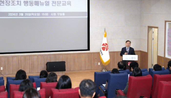 ¹Ú³²ÁÖ ½Ã¹Î¾ÈÀü½ÇÀåÀº ¡°À̹ø ±³À°À» ÅëÇØ ¸Å´º¾ó ÁÖ°ü ºÎ¼ Á÷¿øµéÀÌ ÇöÀåÁ¶Ä¡ Çൿ¸Å´º¾óÀ» ½ÇÈ¿¼º ÀÖ°Ô º¸¿ÏÇÏ°í °³¼±Çϴµ¥ µµ¿òÀ» ÁÙ °ÍÀ¸·Î ±â´ëÇÑ´Ù¡±¸ç ¡°¸Å´º¾óÀ» Áö¼ÓÀûÀ¸·Î Á¡°Ë¡¤°³¼±ÇØ ¾ðÁ¦ ¾îµð¼³ª ¡®¾È½Éµµ½Ã ±¤ÁÖ¡¯°¡ µÉ ¼ö ÀÖµµ·Ï ÃÖ¼±À» ´ÙÇϰڴ١±°í ¸»Çß´Ù.