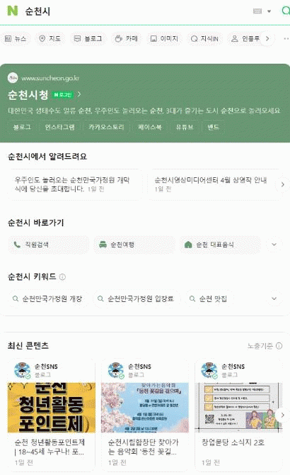 ³×À̹ö¿¡¼ ¡®¼øÃµ½Ã¡¯³ª ¡®¼øÃµ½Ãû¡¯À» °Ë»öÇÏ¸é °Ë»ö °á°ú »ó´Ü¿¡¼ ½Ã¿¡¼ ¿î¿µÇÏ´Â ´©¸®Áý, ºí·Î±×, À¯Æ©ºê µî °ø½Ä»çÀÌÆ®¸¦ Çѹø¿¡ È®ÀÎÇÒ ¼ö ÀÖÀ¸¸ç, ´©¸®Áý¿¡¼ Á¦°øÇÏ´Â ÁÖ¿ä ½ÃÁ¤ ¼Ò½Äµµ ºü¸£°Ô »ìÆìº¼ ¼ö ÀÖ´Ù.