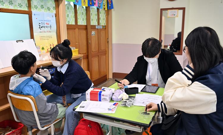 ¿ÃÇØ ½Å¼³µÈ Ä¡±â°øÇаú Çлýµé°ú ±³¼öÁøÀº 3¿ù 26ÀÏ ¿ÀÀü ±¤ÁÖ±¤¿ª½Ã ±Ý±¸ÃʵîÇб³(±³Àå À̼®±Ý)¸¦ ¹æ¹®, Ä¡°ú±â°ø»ç°¡ °³¹ßÇÑ Çõ½ÅÀûÀÎ ±¸°°ËÁø±â '½º¸¶Åõ½º(Smartooth)'¸¦ Ȱ¿ëÇÑ ¾î¸°ÀÌ ±¸°°ËÁø°ú ±¸°°ü¸® ±³À° µîÀ» ½Ç½ÃÇØ Å« È£ÀÀÀ» ¹Þ¾Ò´Ù.