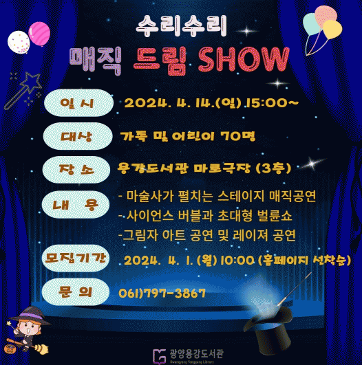 ¡®¼ö¸® ¼ö¸® ÆÇŸÁö µå¸² ¼î¡¯´Â µµ¼°üÀÇ ³¯¡¤µµ¼°ü ÁÖ°£À» ¸Â¾Æ µµ¼°üÀ» ã´Â ½Ã¹Îµé¿¡°Ô ´Ù¾çÇÑ ¹®ÈüÇèÀ» Á¦°øÇÏ°í ¾ÆÀÌµé »Ó ¾Æ´Ï¶ó °¡Á·ÀÌ ÇÔ²² Áñ±æ ¼ö ÀÖµµ·Ï Ưº°È÷ ¸¶·ÃµÈ °¡Á· Ä£È °ø¿¬ÀÌ´Ù.