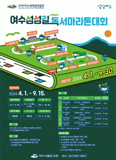 ½ÅûÀº ¿À´Â 4¿ù 1ÀϺÎÅÍ 9¿ù 15ÀϱîÁö ¿©¼öµ¶¼¸¶¶óÅæ´ëȸ ȨÆäÀÌÁö¿¡¼ ÇÒ ¼ö ÀÖÀ¸¸ç, Âü°¡ ½Åû ÈÄ µ¿ÀÏ È¨ÆäÀÌÁö¿¡¼ µ¶¼±â·ÏÀÏÁö¸¦ ÀÛ¼ºÇÏ¸é µÈ´Ù.