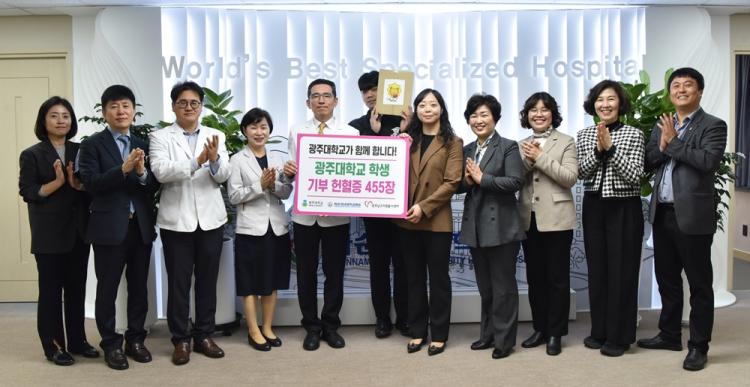 ¹ÎÁ¤ÁØ È¼øÀü³²´ëÇб³º´¿øÀåÀº ¡°±¤ÁÖ´ëÇб³ ÇлýµéÀÇ ÇåÇ÷Áõ ±âºÎ´Â ¾î·Á¿î ȯÀڵ鿡°Ô Å« µµ¿òÀÌ µÉ °ÍÀÌ´Ù. °¨»çÇÑ ¸¶À½À¸·Î ÇåÇ÷ÁõÀ» »ç¿ëÇϰڴ١±°í °¨»ç Àλ縦 ÀüÇß´Ù.