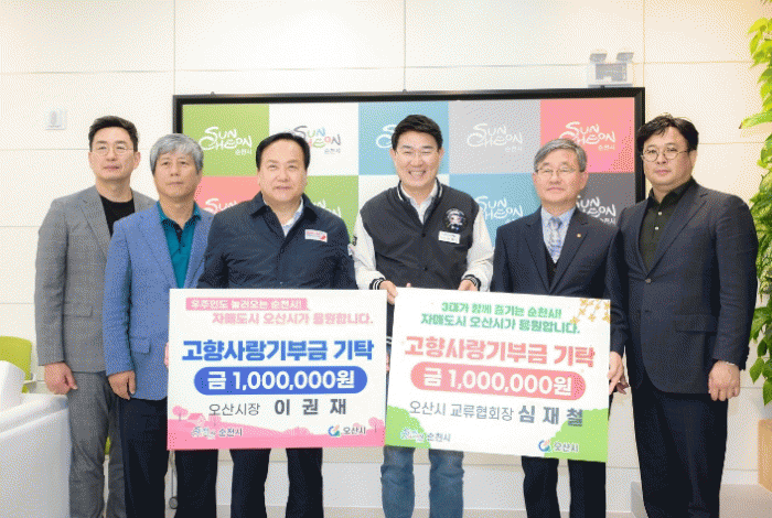 ³ë°ü±Ô ¼øÃµ½ÃÀåÀº ¡°¼øÃµ½Ã¸¦ ¹æ¹®ÇÏ°í °íÇâ»ç¶û±âºÎ±ÝÀ» ±âÅ¹ÇØ ÁֽŠÀ̱ÇÀç ¿À»ê½ÃÀå´ÔÀ» ºñ·ÔÇÑ ¿À»ê½Ã ¹æ¹®´Ü¿¡ °¨»çµå¸°´Ù¡±¸ç, ¡°¾ÕÀ¸·Î ´õ¿í Ȱ¹ßÇÑ ±³·ù¿Í »ó»ý Çù·ÂÀÌ À̾îÁö±æ ¹Ù¶õ´Ù¡±°í ¸»Çß´Ù.
