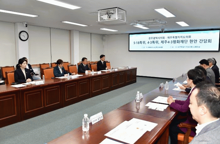 À̳¯ °£´ãȸ¿¡¼ Á¤ ÀÇÀåÀº ¡°±¹°¡Æø·ÂÀÇ ¾ÆÇÄÀ» °Þ¾ú´ø ±¤ÁÖ¡¤Àü³²¡¤Á¦ÁÖ Áö¿ª °£ÀÇ »óÈ£Çù·ÂÀ» À§ÇØ Áö³ÇØ 11¿ù¿¡ 3°³ ½ÃµµÀÇȸ°¡ ¹ÎÁÖÆòȺ§Æ® ±¸ÃàÀ» À§ÇÑ ¾÷¹«Çù¾àÀ» ¸Î¾ú´Ù¡±¸é¼ ¡°4¿ù Áß¿¡ ±¤ÁÖ½ÃÀÇȸ¿¡¼ Á¦ÁÖ4¡¤3Ç×Àï ±³À°À» Çϰí, 5¿ù¿¡´Â Á¦ÁÖµµÀÇȸ¿¡¼ 5¡¤18 ±³À°À» ÇÏ´Â ¹æ½ÄÀ¸·Î ±³Â÷ ±³À°À» ½Ç½ÃÇÏÀÚ¡±°í ±è°æÇÐ ÀÇÀå¿¡°Ô Á¦¾ÈÇß´Ù.