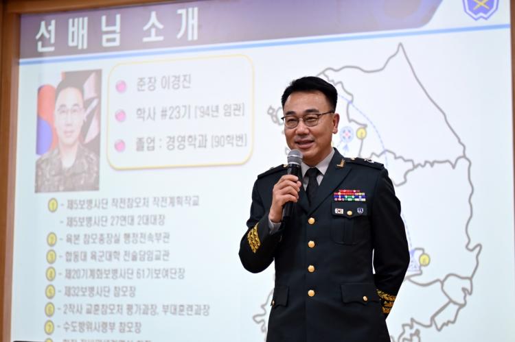 À̾î À̰æÁø Âü¸ðÀåÀº 63±â¡¤64±â Çбº»ç°üÈ帻ý°úÀÇ °£´ãȸ¿¡ Âü¼®ÇØ ¿ì¼öÇÑ ±º»ç¼ºÀû°ú ¼º½ÇÇÑ È°µ¿À¸·Î ¸ð¹üÀ» º¸ÀÎ 63±â Çã ÈÆ È帻ý(Ç×°ø¼ºñ½ºÇаú)°ú ¿ÀÇö¼ö È帻ý(°æ¿µÇкÎ)¿¡°Ô »óÀåÀ» ¼ö¿©Çѵ¥ À̾î, 65±â È帻ýµé¿¡°Ô ÀÀ¿ø°ú °Ý·ÁÀÇ ¸Þ½ÃÁö¸¦ Àü´ÞÇß´Ù.