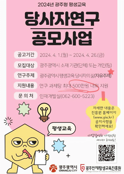 ±¤ÁÖ±¤¿ª½Ã ¼ÒÀç ±â°ü(´Üü)°ú °³ÀÎ(ÆÀ)À̶ó¸é ´©±¸³ª »îÀÇ ¿¬±¸ÀÚ°¡ µÉ ¼ö ÀÖ´Ù.