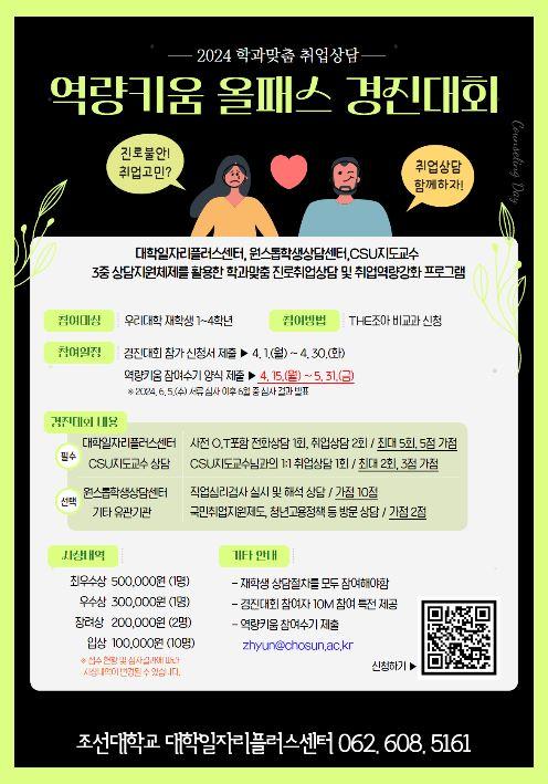 Á¶¼±´ëÇб³ ±èÀçÈ« ´ëÇÐÀÏÀÚ¸®Ç÷¯½º¼¾ÅÍÀåÀº ¡°¿ª·®Å°¿ò ¿ÃÆÐ½º °æÁø´ëȸ¸¦ ÅëÇØ Á¶¼±´ë ÇлýµéÀÇ Àü°ø ÁøÃâºÐ¾ß Ž»ö µî ü°èÀûÀÎ Áø·ÎÃë¾÷ »ó´ãÀ» ÇÒ ¼ö ÀÖµµ·Ï Àû±ØÀûÀ¸·Î Áö¿øÇÔÀ¸·Î½á Ãë¾÷¿ª·® °È¿¡ Å« ¿ªÇÒÀ» ÇÒ ¼ö ÀÖÀ» °ÍÀ¸·Î ±â´ëÇÑ´Ù¡±°í ¸»Çß´Ù.