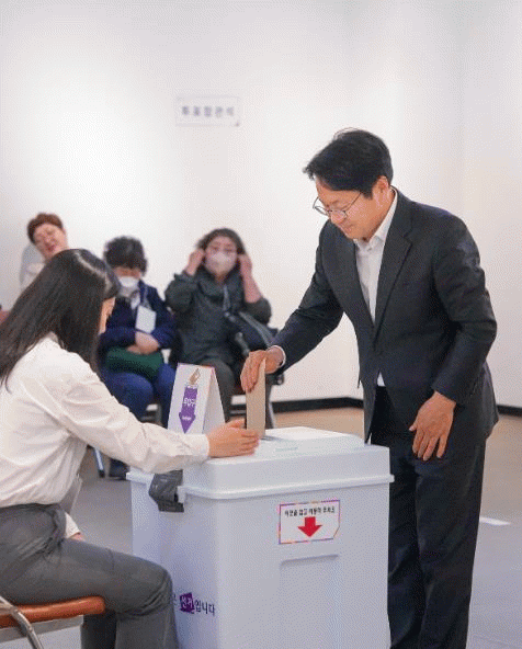 ° ½ÃÀåÀº »çÀüÅõÇ¥¸¦ ¸¶Ä¡°í ¡°°¢ÀÚ°¡ ÁÁ¾ÆÇÏ´Â »ç¶÷, ÁÁ¾ÆÇÏ´Â Á¤´ç¿¡ ÁÁÀº Á¤Ä¡¿¡ ´ëÇÑ Èñ¸ÁÀ» ´ã¾Æ ÅõÇ¥ÇØ ´Þ¶ó¡±¸ç ¡°ÅõÇ¥ÇÏ´Â °ÍÀÌ ÈûÀ̰í, ÅõÇ¥¿¡ Âü¿©ÇÏ´Â °ÍÀ̾߸»·Î ÁÁÀº Á¤Ä¡¸¦ ½ÇÇöÇϴ ù ½ÃÀÛÀÌ´Ù¡±¸ç ÅõÇ¥¸¦ µ¶·ÁÇß´Ù.