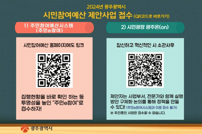 ±¤Áֽô ƯÈ÷ Çõ½ÅÀûÀ̰í Âü½ÅÇÑ Á¦¾È»ç¾÷À» ¡®½Ã¹Î±¤Àå ±¤Áֿ¡¯À» ÅëÇØ Á¢¼ö¹Þ´Â´Ù. ±¤Áֿ¿¡¼ 30ÀÏ µ¿¾È 50Ç¥ ÀÌ»ó °ø°¨À» ¾òÀº Á¦¾È »ç¾÷Àº »ç¾÷ºÎ¼, Àü¹®°¡¿Í ÇÔ²² »ç¾÷À» ±¸Ã¼ÈÇÏ°í ½ÇÇà °¡´ÉÇÑ Á¤Ã¥À¸·Î ¸¸µé ¼ö ÀÖ´Ù.