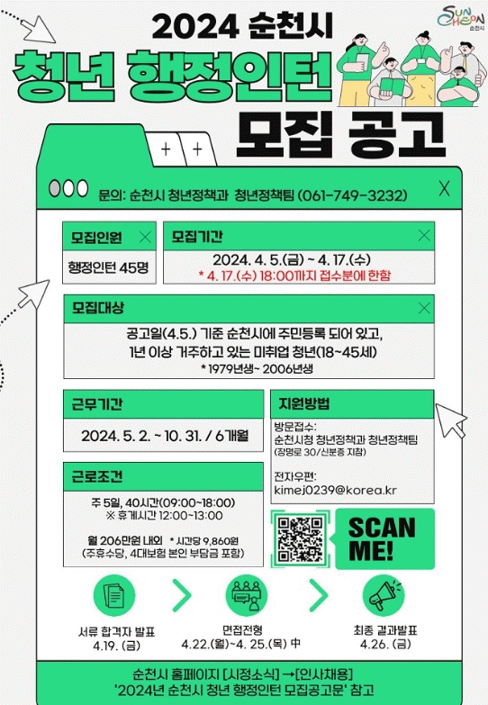 ¼±¹ßÀοøÀº ÃÑ 45¸íÀ¸·Î, 5¿ùºÎÅÍ 10¿ù±îÁö 6°³¿ù µ¿¾È ¼øÃµ½Ã ½Çž°úž¼Ò, À¾¸éµ¿ ÇàÁ¤º¹Áö¼¾ÅÍ¿¡¼ ±Ù¹«Çϸç ÇàÁ¤ ½Ç¹« °æÇèÀ» ½×°í Ãë¾÷ °æÀï·ÂÀ» °®Ãâ ¼ö ÀÖ´Ù.