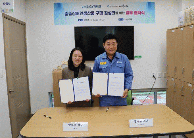 À̹ø Çù¾àÀº Æ÷½ºÄÚGYRÅ×Å©¿¡¼´Â Àå¾ÖÀÎÁ÷¾÷ÀçȰ½Ã¼³ÀÎ ¼»ê³ª·¡ÀÇ Á¦°úÁ¦»§ »ý»êǰÀ» ¿¬°£ °è¾à¿¡ µû¶ó ÀÏÁ¤¾×À» ±¸ÀÔÇϰí, ¼»ê³ª·¡´Â ÇØ´ç ±â¾÷ÀÌ Àå¾ÖÀÎ ¿¬°è°í¿ëÀ¸·Î ÀÎÇÑ Àå¾ÖÀΰí¿ëºÎ´ã±ÝÀ» °¨¸é¹ÞÀ» ¼ö ÀÖµµ·Ï »óÈ£ Çù·ÂÇÏ´Â ³»¿ëÀÌ´Ù.
