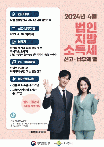 ³ªÁֽô Áö³ÇØ 12¿ù¸» ±âÁØ °á»ê¹ýÀÎÀÇ ¹ýÀμҵ濡 °üÇÑ ¹ýÀÎÁö¹æ¼Òµæ¼¼¸¦ ÀÌ´Þ 30ÀϱîÁö »ç¾÷Àå ¼ÒÀçÁö ÀÚÄ¡´Üü¿¡ ½Å°í¡¤³³ºÎÇÒ °ÍÀ» ´çºÎÇß´Ù.