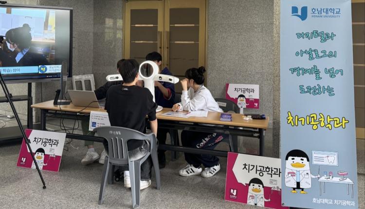 Ä¡±â°øÇаú ÇлýµéÀº À̹ø Çà»ç¿¡´Â Ä¡°ú Àåºñ ¾÷üÀÎ ·¹ÀÌÀÇ Áö¿øÀ» ¹Þ¾Æ ¡®·¹ÀÌ ÆäÀ̽º¡¯·Î Âü¼®ÀÚµéÀÇ ¾ó±¼À» ½ºÄµÇÏ¿© ½º¸¶Æ®ÆùÀ¸·Î 3D À̹ÌÁö¸¦ »ý¼ºÇغ¸´Â üÇèÀ» ÅëÇØ, Ä¡°ú±â°ø ºÐ¾ßÀÇ µðÁöÅÐ ±â¼úÀ» Á÷Á¢ °æÇèÇÒ ¼ö ÀÖµµ·Ï Çß´Ù. ÀÌ ±â¼úÀº Ä¡°ú º¸Ã¶¹° Á¦ÀÛ ½Ã ȯÀÚÀÇ ¾ó±¼°ú Ä¡¾Æ Á¤º¸¸¦ Á¤È®ÇÏ°Ô ÆÄ¾ÇÇÏ´Â µ¥ ÇÙ½ÉÀûÀÎ ¿ªÇÒÀ» ÇÑ´Ù