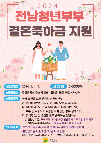 ½Åû ´ë»óÀº 2022³â 7¿ù 4ÀÏ ÀÌÈÄ È¥ÀÎ½Å°í¸¦ ÇÑ 49¼¼ ÀÌÇÏ ºÎºÎ(È¥ÀνŰíÀÏ ±âÁØ)·Î »ý¾Ö 1ȸ Áö¿øÇϸç, ¿ÃÇØºÎÅÍ´Â ÀçÈ¥ ºÎºÎµµ Æ÷ÇԵȴÙ. ´Ù¸¸, ºÎºÎ Áß ´©±¸¶óµµ û³âºÎºÎ °áÈ¥ÃàÇϱÝÀ» ¹ÞÀº °æ·ÂÀÌ ÀÖÀ» ½Ã Áö¿ø ´ë»ó¿¡¼ Á¦¿ÜµÈ´Ù.