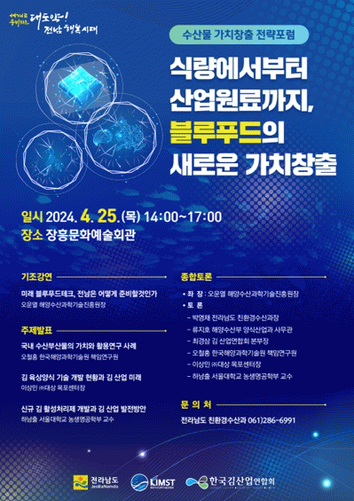 ÀÌ¾î ¿Àö¿õ Çѱ¹Çؾç°úÇбâ¼ú¿ø Ã¥ÀÓ¿¬±¸¿øÀÇ ¡®±¹³» ¼ö»êºÎ»ê¹° °¡Ä¡¿Í Ȱ¿ë¿¬±¸ »ç·Ê¡¯, ÀÌ»ó¹Î (ÁÖ)´ë»ó ¸ñÆ÷¼¾ÅÍÀåÀÇ ¡®±è À°»ó¾ç½Ä ±â¼ú°³¹ß ÇöȲ°ú ±è »ê¾÷ ¹Ì·¡¡¯, Çϳ²Ãâ ¼¿ï´ë ±³¼öÀÇ ¡®±è Ȱ¼ºÃ³¸®Á¦ °³¹ß°ú ±è »ê¾÷ ¹ßÀü¹æ¾È¡¯ ÁÖÁ¦¹ßÇ¥°¡ ÁøÇàµÈ´Ù.
