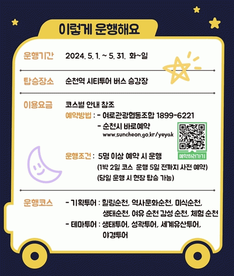 ½Ã °ü°èÀÚ´Â ¡°°¡Á¤ÀÇ ´Þ 5¿ùÀ» ¸Â¾Æ °¡Á·, ¿¬ÀÎ, Ä£±¸ µî°ú ´Ù¾çÇÏ°Ô Áñ±æ ¼ö ÀÖ´Â ÄÚ½º¸¦ ÁغñÇß´Ù¡±¸ç, ¡°¼øÃµÀº ³·»Ó¸¸ ¾Æ´Ï¶ó ¹ã¿¡µµ ÈξÀ ¾Æ¸§´Ù¿ì´Ï, 5¿ù ¿©Ç൵ ½ÃƼÅõ¾î ¹ö½ºÅ¸°í ¼øÃµ¿¡¼ ´Þ´ÞÇÑ º½°ú ¹ãÀ» Áñ±â½Ã±æ ¹Ù¶õ´Ù¡±°í ¸»Çß´Ù.