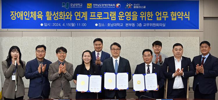 [ÅåÅå´º½º]È£³²´ëÇб³(ÃÑÀå ¹Ú»óö)´Â 4¿ù 15ÀÏ º»ºÎµ¿ 3Ãþ ±³¹«À§¿øÈ¸Àǽǿ¡¼ Àü¶ó³²µµÀå¾ÖÀÎüÀ°È¸(ȸÀå ±è¿µ·Ï), È£³²´ë¶ö¶ö¶ó½ºÄð(´ëÇ¥ Á¤À±Èñ)°ú ¾÷¹«Çù¾àÀ» ü°á, »óÈ£ ±ä¹ÐÇÑ Çù·Â ü°è¸¦ ±¸ÃàÇϰí Àü¶ó³²µµ Àå¾ÖÀÎüÀ° Ȱ¼ºÈ¿Í ¿¬°è ÇÁ·Î±×·¥ ¿î¿µ¿¡ Èû¾²±â·Î Çß´Ù.